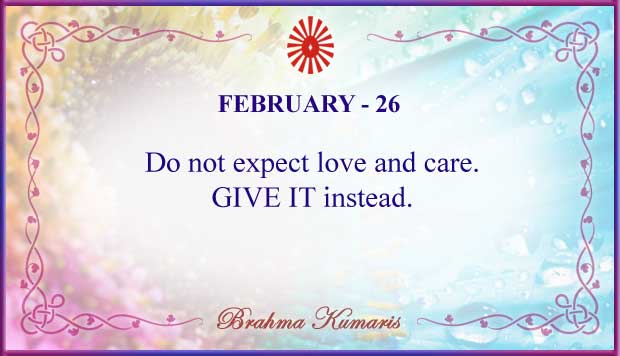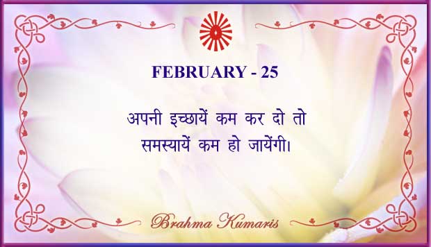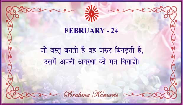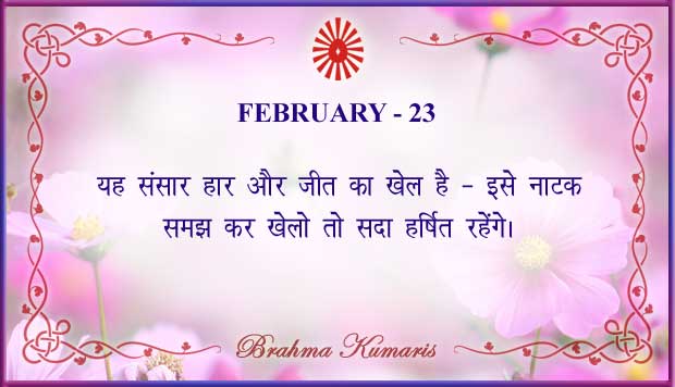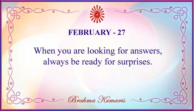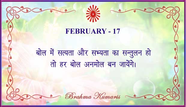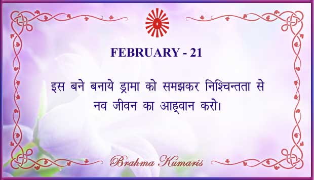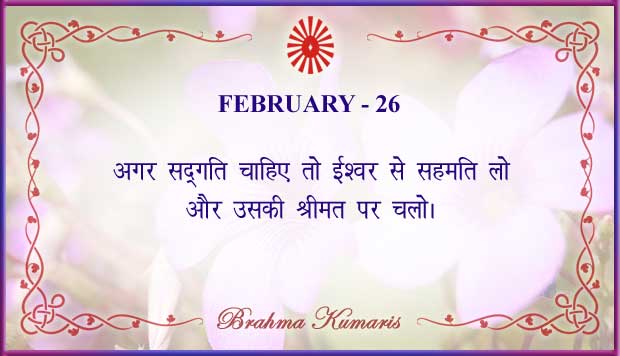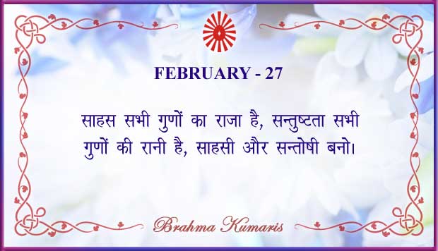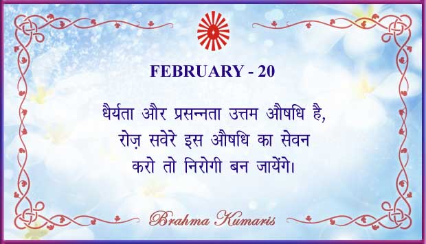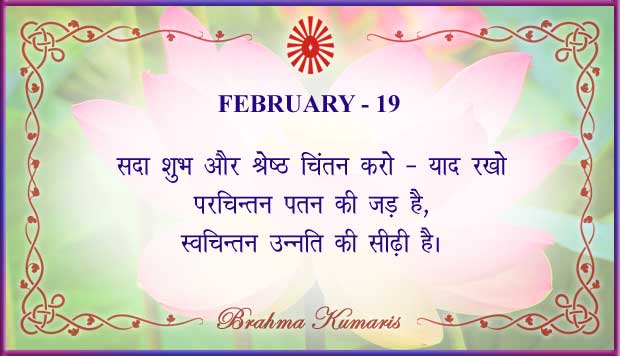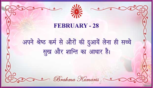 Get Brahma Kumaris "Thought for Today" calendar with all individual days from 1st to 28th Feb 2026 ➤View Hindi and English calendars (jpg image) or download a single PDF file (of the entire month) or get the "full version" of the daily inspirations on this google folder (for Feb 2026)